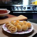 Ziemniaczane knedelki z mięsem 109Knedle ziemniaczane można podawać na wiele sposobów. Na słodko, np. z owocami, polane śmietaną czy masłem, i na wytrawnie, np. z farszem serowym czy mięsnym. Te