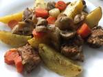 Łopatka wieprzowa pieczona z warzywami 191Łopatka wieprzowa pieczona z warzywami to pyszne i mało wymagające danie jednogarnkowe. Smaczny obiad bez dużego wysiłku. Dobrze przyprawione mięso z pieczarkami i delikatne pieczone warzywa