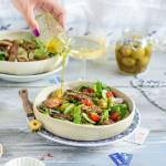 3 błyskawiczne sałatki na grilla 491samo zrób z cebulą. Przygotuj sos: wymieszaj jogurt naturalny z łyżką majonezu, dodaj do tego sól, pieprz i koperek. Do dużej miski wsyp mix sałat, na to paprykę, cebulę i kurczaka. Poukładaj na to grzanki, które możesz kupić gotowe, a jeśli takich nie lubisz przygotuj samemu , krojąc chleb w kostkę i podsmażając z każdej strony na patelni bez tłuszczu. Sałatkę(...)wymieszaj . Posyp sałatkę startym parmezanem. Gotowe! Sałatka z pomidorami i grzankami To sałatka typu: szybciej już się nie da . Kilka składników, prosta, a do przekąszenia przy kiełbasce i karkówce będzie akurat. Składaniki: mix sałat kilka pomidorków koktajlowych grzanki 4 łyżki jogurtu naturalnego 1 łyżka majonezu ząbek czosnku sól pieprz koperek Ułóż na głębokim talerzu mix sałat. Pokrój pomidorki w ćwiartki