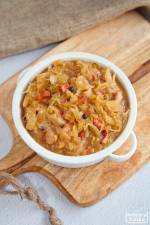 Kapusta kiszona zasmażana po góralsku. Idealna do obiadu. PRZEPIS 354Taką kapustę jedliśmy kiedyś w Beskidach na festiwalu kulinarnym kół gospodyń wiejskich. Bardzo nam posmakowała, więc poprosiliśmy o przepis i od tamtej pory robimy regularnie. Przepis