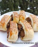 Paszteciki z ciasta francuskiego z kapustą 168Paszteciki z ciasta francuskiego z kapustą , to błyskawicznie przygotowane danie na wieczór czy imprezę. Dzięki temu, że kupujemy gotowe ciast francuskie, omijamy cały proces wyrastania i