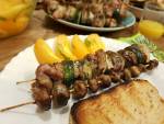 Szaszłyki ze schabem, karkówką, cukinią i pieczarkami 159Mamy zapowiedziane kilka dni pogodowej ulgi. Trochę niższe temperatury, trochę mniej słońca. Dlatego myślę, że więcej osób zdecyduje się na rozpalenie pod rusztami i poświęci się