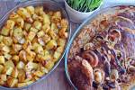 KARKÓWKA PO CYGAŃSKU 215Pyszne danie obiadowe z karkówką w roli głównej. Karkówka pod pierzynką warzywną z cebuli, pieczarek, papryki oraz ogórków kiszonych, w słodko-kwaśnym sosie pomidorowym, pieczona w piekarniku. To danie wymiata! Przyznam szczerze, że nigdy nie byłam fanem tego rodzaju mięsa. Kojarzyła mi się ona z tłustym i ciężkim jedzeniem, kupowanym głównie na grilla. A to danie całkowicie odmieniło moje(...)pracy jest niewiele. Jednak trzeba na nią trochę poczekać, bo dość długo pieczenie się w piekarniku. Idealna propozycja na niedzielny obiad... Składniki: ok. 600-700 g karkówki 2 czerwone papryki 3 cebule 300 g pieczarek 4 ogórki kiszone sól, pieprz papryka słodka mielona papryka ostra czosnek granulowany 2-3 łyżki oleju mąka do oprószenia Sos: 1 szklanka pomidorów krojonych