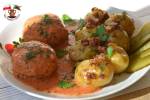 KARKÓWKA PO CYGAŃSKU 218Pyszne danie obiadowe z karkówką w roli głównej. Karkówka pod pierzynką warzywną z cebuli, pieczarek, papryki oraz ogórków kiszonych, w słodko-kwaśnym sosie pomidorowym, pieczona w piekarniku. To danie wymiata! Przyznam szczerze, że nigdy nie byłam fanem tego rodzaju mięsa. Kojarzyła mi się ona z tłustym i ciężkim jedzeniem, kupowanym głównie na grilla. A to danie całkowicie odmieniło moje(...)pracy jest niewiele. Jednak trzeba na nią trochę poczekać, bo dość długo pieczenie się w piekarniku. Idealna propozycja na niedzielny obiad... Składniki: ok. 600-700 g karkówki 2 czerwone papryki 3 cebule 300 g pieczarek 4 ogórki kiszone sól, pieprz papryka słodka mielona papryka ostra czosnek granulowany 2-3 łyżki oleju mąka do oprószenia Sos: 1 szklanka pomidorów krojonych
