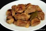 Karkówka w sosie własnym 515nadzwyczajnych kulinarnych umiejętności, aby cieszyć się jej smakiem Kierujcie się wskazówkami z przepisu, który zamieściłam niżej, a będziecie mogli zajadać się delikatnym i miękkim mięsem. Przygotowując karkówkę dodaję niewiele dodatków, bo zaledwie cebule i czosnek oraz kilka przypraw. Uważam, że sama w sobie ma wspaniały smak i nie musimy jej podkręcać dużą ilością „dopalaczy”. Zapraszam do wykorzystania przepisu(...)Waszymi oczekiwaniami Zobacz też: Żeberka w sosie własnym Przepis na karkówkę w sosie własnym Drukuj przepis Porcji: 5 Czas gotowania: 1 godzina Składniki 500 g karkówki papryka słodka do oprószenia pół szklanki mąki średnia cebula 2 ząbki czosnku liść laurowy 3 ziarna ziela angielskiego olej do smażenia sól i pieprz do smaku szklanka wody Przepis 1 Karkówkę kroimy na kotlety