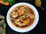 GULASZ Z KARKÓWKI PO MYŚLIWSKU 161Gulasz z karkówki po myśliwsku to pyszny pomysł na obiad , ale nie tylko. Fakt najczęściej podaję gulasz na obiad z dodatkiem ziemniaków, placków ziemniaczanych czy klusek