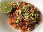 Karkówka w stylu azjatyckim 171Karkówka w stylu azjatyckim to smaczne i bardzo szybkie do zrobienia danie obiadowe. Pikantne i soczyste mięso z dużą ilością słodkiej marchewki i przypraw. Karkówka w