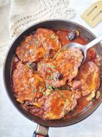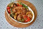 Karkówka pieczona z pieczarkami, cebulą i papryką 187Soczyste i bardzo mięciutkie mięso pieczone w słodko-kwaśnej marynacie w towarzystwie warzyw i pieczarek. Mięso piekłam w plastrach i w rękawie do pieczenia, dzięki czemu
