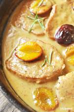 Schab w sosie własnym z dodatkiem śliwek 143Myślę, że spokojnie mogę zostawić taki tytuł. Schab naprawdę gotuje się w sosie własnym, ale gdzieś w połowie gotowania dodajemy do niego świeże śliwki. Potem część