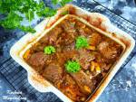 Karkówka pieczona w piwie 295Plastry karkówki wieprzowej w ciemnym sosie piwnym z cebulą oraz papryką, pieczone w piekarniku. Fantastyczny obiad! Mięciutkie i kruche mięso, dosłownie rozpływające się w ustach w
