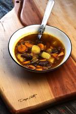 Zupa zbójnicka 246sycąca zupa z mięsem wieprzowym i mnóstwem warzyw. Idealna na chłodne jesienne i zimowe dni! Składniki: 0,5 kg mięsa wieprzowego – łopatki, szynki, karkówki… 10 dkg wędzonego boczku 1 cebula 2 ząbki czosnku 10dkg pieczarek 1 marchew 1 czerwona papryka 1 papryczka chilli 1/2 papryki żółtej lub zielonej 2 duże ziemniaki 1/4 główki kapusty