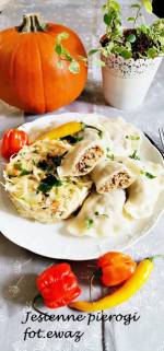 Jesienne pierogi 210Wczoraj na obiad zrobiłam pierogi. Dawno ich nie było, więc postanowiłam zrobić przyjemność rodzince. Ciasto pierogowe to ciasto z krupczatki a farsz z karkówki z dodatkiem