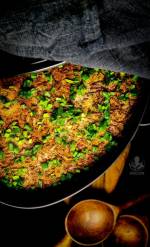 Bigos ze słodkiej i kiszonej kapusty 161Ponura kwietniowa pogoda nie zachęcała do gotowania lekkich, warzywnych posiłków, stąd na naszym stole pojawił się rozgrzewający i kaloryczny bigos ze słodkiej i kiszonej kapusty . Dwa
