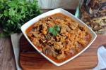SMACZNY BIGOS Z MIĘSEM, GRZBAMI I ŚLIWKAMI 255Bigos z mięsem, suszonymi śliwkami i grzybami jest nadzwyczaj aromatyczny i smaczny. Ma piękny kolor i nadaje się do pasteryzowania w słoikach lub do zamrożenia. Przepis