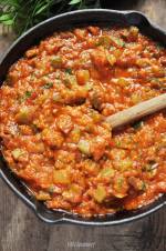 Bigos z cukinii i kiełbasy 122Hej heeej. Jak się cieszę, że znowu tu jestem, na dodatek z perspektywą powrotu do regularności. Tola jest dziś pierwszy dzień w przedszkolu, więc nie było