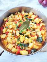Gulasz z karkówką i cukinią / Pork and zucchini stew 306down for recipe in English Gulasz z karkówką i cukinią (4 porcje) Składniki: 600 g karkówki wieprzowej pokrojonej w grubą kostkę 1 mała cukinia pokrojona w kostkę 250 g pieczarek, pokrojonych w ćwiartki 100 g fasolki szparagowej, pokrojonej na 2 cm kawałki 1 cebula, pokrojona w kostkę 2 duże ząbki czosnku, drobno posiekane 2 łyżki koncentratu pomidorowego 200 ml passaty(...)smaku Przygotowanie: Rozgrzej dużą i głęboką patelnię na dużym ogniu, na odrobinie oleju obsmaż mięso z każdej strony do zarumienienia i przełóż na talerz. Do tej samej patelni dodaj cebulę, cukinię, fasolkę i pieczarki i podsmażaj przez 3 minuty. Następnie dodaj czosnek, podsmaż przez chwilę i wmieszaj mięso. Dodaj bulion, passatę, liść laurowy i wszystkie przyprawy, wymieszaj i gotuj