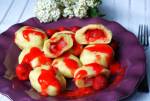 Knedle ziemniaczano-serowe z truskawkami 306Najwięcej obiadów na słodko robimy chyba w sezonie truskawkowym. Paruchy z truskawkami , pierogi z truskawkami i knedle z truskawkami muszą choć raz pojawić się na stole. Obowiązkowo polane sosem truskawkowym lub waniliowym. składniki: 600 g letnich ugotowanych ziemniaków 400 g sera białego ( u mnie z kostki) 2 jajka ok 1,5 szklanki mąki pszennej truskawki + cukier Ugotowane letnie(...)odrywać porcje ciasta. Z każdej porcji uformować mały placuszek. Na środku każdego placuszka ułożyć truskawkę. Ciasto dokładnie zlepić tak aby cała truskawka była zakryta i uformować zgrabną kulkę. Gotowe knedle gotować partiami w osolonym wrzątku ok 8-10 minut od wypłynięcia. Podawać polane sosem waniliowym lub truskawkowym
