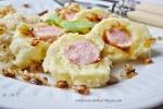 Knedle ziemniaczane z kiełbasą i kiszoną kapustą 223ziemniaki od poprzedniego dnia i żal byłoby ich nie wykorzystać;) Najczęściej robię kopytka, jednak czasem wymyślam coś innego. Tak też było tym razem, po małym przeglądzie lodówki postanowiłam zrobić knedle nadziewane kiełbasą, z dodatkiem kiszonej kapusty. Danie okazało się bardzo smaczne, sycące i na pewno jeszcze nie raz je przyrządzę... Przepis dodaję do akcji =ZIEMNIAK= Składniki: 500g(...)placka o śr. około 8cm. Na środku ułożyć po kawałku kiełbasy, dokładnie zakleić. Gotować w osolonym wrzątku przez około 15 minut. Odcedzić. Pozostałą cebulkę posiekać, podsmażyć na łyżce oleju. Knedle podawać wraz z ugotowaną kapustą i podsmażoną cebulką