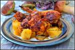 Kurczak na ostro pieczony z jesiennymi warzywami 263Składniki: ok. 1,5 kg pałek i skrzydełek z kurczaka 800 g ziemniaków 400 g dyni 400 g grzybów leśnych sól, pieprz rozmaryn gałka muszkatałowa słodka