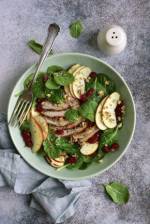 SAŁATKA JESIENNA 361Sałatka dostała nazwę jesiennej, ponieważ wszystkie składające się na nią składniki są dostępne jesienią i zimą. Jest ona też doskonałym pomysłem na wykorzystanie niezjedzonej pieczeni czy mięsa z zupy. Kurczaka można zamienić na dowolny rodzaj mięsa. Post ten jest szczególny, ponieważ zdjęcia do niego są autorstwa mojej Mamy :). I chociaż miała do dyspozycji najzwyklejszy aparat, to myślę, że sobie