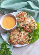 Drobiowe kotlety siekane z pieczarkami i papryką 87Drobiowo - serowe pieczone kotlety siekane z dodatkiem pieczarek i papryki. Pyszna przekąska na zimno i pomysł na smakowity obiad. Składniki: 850 g filetu z piersi kurczaka