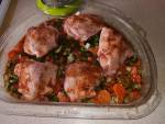 Udka z kurczaka w sosie pomidorowym z warzywami i parmezanem 1657Mój ostatni przepis na Pałki z kurczaka pieczone w miodzie i musztardzie cieszył się Waszym ogromnym uznaniem. Dlatego dziś chciałbym zaprezentować kolejny przepis na udka z kurczaka. Tym razem w sosie pomidorowym z warzywami i parmezanem. To świetny pomysł na smaczny obiad. Delikatny kurczak w aromatycznym śródziemnomorskim aromacie. Odrobina włoskiego klimatu w naszym polskim kurczaku. Możecie serwować(...)kroimy w półplasterki. Na dnie naczynia żaroodpornego skropionego oliwą, układamy marchewkę i cebulę. Na warzywach układamy udka z kurczaka. Posypujemy je połową parmezanu i polewamy pomidorami w sosie. Na koniec posypujemy drugą częścią parmezanu, startą skórką z cytryny i skrapiamy sokiem. Pieczemy pod przykryciem w piekarniku rozgrzanym do 180'C przez 80 min. Aby skórka na udkach była chrupiąca polecam