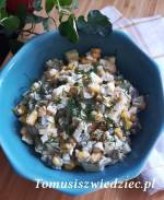 Sałatka z kurczaka z winogronem 119Pyszna, delikatna sałatka, z pieczonym kurczakiem, ananasem, winogronem i porem. Idealna na mniejsze i większe uroczystości. SKŁADNIKI: 1 cały kurczak upieczony 1 puszka ananasa w
