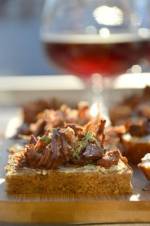 Pulled beef w czekoladzie na grzankach podane z Koźlakiem 218marzeniami, goniąc za nieznanym wszyscy pokochaliśmy dania, których zrobienie zajmuje nam chwilę, zaledwie kilka minut, by jak najmniej czasu spędzić "przy garnkach". Zapomnieliśmy co to znaczy długie, powolne gotowanie czy pieczenie, które potrafi w smaczny sposób pokazać nam piękno dania, uwydatnić zalety i charakterystyczne, mocne jego strony. Dobra wołowina potrzebuje czasu, potrzebuje miłości i cierpliwości. Dużo cierpliwości. Tym daniem robię(...)też się stało, jedno nie dominuje drugiego natomiast smak piwa świetnie komponuje się ze smakiem przystawki. Składniki (20-25 grzanek dla 5-6 osób): 500 gram wołowiny (może być łopatka, pręga lub goleń) 1 butelka piwa typu Koźlak 3 pomidory malinowe 2 marchewki 1 pietruszka 1 seler 1 cebula 1 ząbek czosnku 2-3 szklanki bulionu 2- 3 kostki