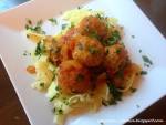 PULPECIKI Z WARZYWAMI W SOSIE POMIDOROWYM, Z DOMOWYM MAKARONEM 218gryzie", z małymi zmianami pochodzącymi od mojej pierworodnej. Polecam, bardzo smaczna i zdrowa odmiana od typowym klopsików (pulpecików).Składniki pulpecików:- 250g mielonej wieprzowiny- 250g mielonej wołowinyU mnie 500g mielonej łopatki wieprzowej- 1 jajko- 2 łyżki świeżo startego parmezanu- 1 zmiażdżony ząbek czosnku- 1 łyżeczka suszonego oregano- 3 łyżki semoliny (kaszy manny) u mnie 2 łyżki kaszy jaglanej- duża szczypta czarnego(...)rzadki, później zgęstnieje. Dodać mleko, zagotować całość i pojedynczo wkładać surowe pulpeciki.Dopóki kulki nie zmienią koloru z różowego na brązowy nie należy mieszać, gdyż kulki mogą się rozpaść. Gotować częściowo przykryte przez ok.20 minut, pod koniec tego czasu próbujemy sos, być może należy go jeszcze doprawić. Idealnie smakuje z domowym makaronem orkiszowym lub pszennym.Smacznego
