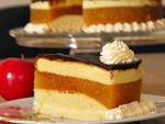 Warstwowy torcik ala Szarlotka 340białka dla rozluźnienia masy, aby dała się łatwo rozmiksować). Mieszamy wszystko dokładnie mikserem. Gdy uzyskamy już jednolitą masę, dodajemy do niej pozostałą pianę z białek i delikatnie, za pomocą łopatki ( na tym etapie nie używamy już miksera!) mieszamy, do uzyskania jednolitej konsystencji. Naszą biszkoptową masę przekładamy do wyłożonej papierem do pieczenia tortownicy [średnica max. 23cm]. Wkładamy do nagrzanego(...)galaretka wsiąknęła w biszkopt!), następnie wykładamy ją na biszkopt. Wstawiamy do lodówki przynajmniej na 2 h (aż masa całkowicie zastygnie). WARSTWA BUDYNIOWA: W szklance mleka rozpuszczamy budynie. Pozostałe mleko gotujemy z dodatkiem masła i cukru. Do gorącego mleka dodajemy budyń. Cały czas mieszając czekamy, aż masa się zagotuje, po czym odstawiamy do przestygnięcia. Żelatynę rozpuszczamy w minimalnej ilości wody. Przestygniętą