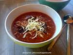 ZUPA TACO 372gotowy. Podaję przykładowe ilości, dosmaczenie to rzecz gustu, zupa powinna być pikantna, dość gęsta, no i przepyszna. Inspiracją był przepis znaleziony tutaj . Składniki: - 1kg mielonego mięsa (u mnie łopatka) - 2 duże cebule - 1 świeża papryka (u mnie 1/2 czerwonej i 1/2 zielonej) - 6 ząbków czosnku (może być cała główka) - puszka pomidorów krojonych, bez skóry - passata pomidorowa - bulion (najlepiej domowy(...)cebula się zeszkli dodajemy mielone mięso, doprawiamy przyprawą do dań meksykańskich, dodajemy także chili i smażymy. Do podsmażonego mięsa dodajemy pomidory z puszki, wlewamy passatę pomidorową, dolewamy bulion i gotujemy całość ok. 20 minut. Na końcu doprawiamy solą, pieprzem, słodką papryką i ewentualnie dosypujemy jeszcze chili. Gdy zupa jest zbyt gęsta dolewamy także gorącą wodę. Podajemy gorącą, posypaną nachos