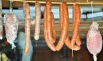 Pierwsza domowa kiełbasa – przygotowania cz. 2 467białej kiełbasy Dobra Kiełbasa przyprawa do wiejskiej kiełbasy Dobra Kiełbasa. Na początek, w wielkiej misce, zmieszaliśmy wszystkie mięsa. Tłuszcze (słoninę, boczek i podgardle) zmieliliśmy w maszynce do mięsa. Łopatkę i karkówkę posiekaliśmy na większe kawałki. Je również moglibyśmy zmielić, ale lubimy w kiełbasie większe kawałki mięsa. Na początek całe mięso doprawiliśmy solą, pieprzem i przeciśniętym przez praskę czosnkiem (2 główki(...)wędliny będą leżeć w solance). W garnuszku zagotowaliśmy wodę z czosnkiem i przyprawami. Przetarliśmy czosnek z przyprawami przez sito. Pozostałości z sitka odrzuciliśmy, a przecier wraz z wywarem z gotowania wlaliśmy do większego garnka. Dodaliśmy wodę, zagotowaliśmy, a następnie ostudziliśmy. Dodaliśmy saletrę i sól. Wrzucamy tyle soli, aż włożone do garnka jajko utrzyma się (może się lekko zatapiać) na powierzchni