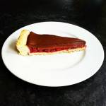 Tarta z kremem czekoladowym i malinami na czerwonym winie 160mąki pszennej 65 g cukru pudru 150 g zimnego masła 1 jajko 1 łyżka śmietany kremówki 36 % Do miski wsypać mąkę, cukier, dodać masło i posiekać łopatka lub nożem. Wbić jajko i wlać śmietanę. Zagnieść ciasto i uformować w kule. Na blacie rozłożyć folie spożywcza i wyłożyć kulkę ciasta. Rozwałkować na folii na okrąg 3 cm większy niż nasza(...)wina czerwonego 2 łyżki mąki ziemniaczanej Maliny umieścić w garnku razem z cukrem i częścią wina. Zagotować. Dwie łyżki wina i rozmieszać z mąką. Dodać zawiesinę do malin i gotować, aż frużelina zgęstnieje. Odstawić do ostygnięcia. Na wystudzony kruchy spód wyłożyć frużelinę malinową, wyrównać. Na wierzch wylać równomiernie krem czekoladowy. Schłodzić w lodówce 3-4 godziny. Smacznego