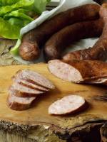 Swojska kiełbasa 1811200 g wieprzowiny (łopatka) 500 g podgardla 350 g słoniny 20 g czosnku pół szkl wody 1 łyżka soli 1 łyżka soli peklowej pieprz pieprz ziołowy