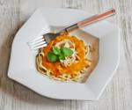 Naleśnikowe spaghetti z sosem marchewkowo - imbirowym 293makaron. To dość szybki sposób na delikatny i nieco inny dodatek na przykład do zupy. Ja dzisiaj namówię Was na połączenie takiego makaronu z sosem z gotowanej marchewki. Danie o dość ciekawym smaku, które zasmakuje wielbicielom marchwi. Wymyśliłam je szukając pomysłu na coś oryginalnego i niebanalnego. Czy mi się udało? musicie sami ocenić, bo zdania