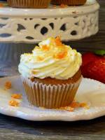 Babeczki marchewkowe z kandyzowana marchewką 269sypkie. Foremki do babeczek wykładamy papilotkami i uzupełniamy do ¾ wysokości ciastem. Pieczemy w 180 stopniach C przez około 18 minut. Dekoracja: Marchewkę myjemy, obieramy i ścieramy na tarce o małych oczkach. Zalewamy szklanką wody i dosypujemy szklankę cukru. Gotujemy na małym ogniu aż płyn się zredukuje, badzie gesty i zacznie bomblować. Przelewamy przez sitko i wykładamy na papier do pieczenia