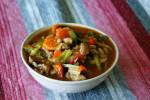Botwinka z mlekiem kokosowym 229ryżowy szczypiorek limonka Przygotowanie: Na dnie garnka rozgrzewamy olej i podsmażamy drobno pokrojone szalotki, po chwili dodajemy posiekany czosnek i imbir oraz pokrojone marchewki, pietruszkę, seler naciowy, buraczki z botwinki (liście i łodygi dodamy pod koniec gotowania). Mieszamy i dusimy około 5 minut. Po tym czasie dodajemy przyprawy: kumin, kolendrę, liść laurowy, odrobinę soli i pieprzy. Warzywa zalewamy litrem