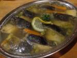 Karp w galarecie 221cytryną czy też octem. Składniki: 1 karp ( około 1 ½ kg ) 3 l wody 2 marchewki Kawałek selera 1 pietruszka 1 cebula Sól Vegeta ( domowa ) Liść laurowy Ziele angielskie 50 – 100 ml ocet spirytusowego 10% Cukier Żelatyna Wykonanie: Warzywa obieramy i gotujemy w osolonej wodzie z liściem laurowym, zielem angielskim i 1 łyżeczką cukru ( dla podkręcenia smaku ). Z karpia usuwamy(...)Dekorujemy według uznania: natką pietruszki, groszkiem, marchewką, cytryny. Sprawdzamy ilość odlanego wywaru ( od tego zależeć będzie ile dodamy żelatyny ) jak i również pod względem smaku. Teraz musimy ocenić czy ilość octu, soli jest wystarczająca. Doprawiamy. Całość zagotowujemy. Zestawiamy z „ognia” i dodajemy odpowiednią ilość żelatyny. Mieszamy. W przypadku galarety z karpia ( gdy gotujemy z głową ) dodajemy mniej żelatyny niż