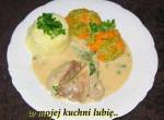 łopatka gotowana w sosie śmietankowym... 223zmieloną i na gorącym oleju podsmażyć z każdej strony wlać wywar, dodać ziele i liść i gotować na mniejszym ogniu z 10 minut do smaku doprawić maggi, śmietanę 18% wymieszać z mąką, ciut wodą i mieszając zagęścić sos - wsypać natkę pietruszki groszem z marchewką ugotować do miękkości, nadmiar wody odlać, dodać 1 łyżkę masła, soli do smaku, wsypać 1 łyżkę