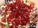 SAŁATKA "KWIATEK" 265cebula (opcjonalnie) majonez ok. 1/4 granata Przygotowanie: 1. Burak obieramy ze skorki i ścieramy na tarce. 2. Marchewkę myjemy i obieramy ze skorki, ścieramy na tarce. 3. Kapustę pekińską myjemy i kroimy w cieniutkie paseczki. 4. Wędlinę kroimy w paseczki. 5. Jajka gotujemy na twardo. PATRZ >>> JAJKA GOTOWANE NA TWARDO . Obieramy z łupiny i ścieramy na tarce