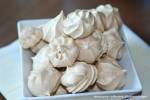 MAŁE BEZIKI NA NIERAFINOWANYM CUKRZE TRZCINOWYM 314wykładamy na nie masę bezową. Duży krążek wyrównać lekko łyżką i uformować coś na kształt koła.By uzyskać małe beziki najlepiej nałożyć masę do woreczka z wyciętym narożnikiem i przełożoną przez niego końcówką do dekoracji tortów.Z takiej "szprycki" tworzyć małe kleksiki. Blaszki pieczemy w piekarniku (na dwóch poziomach równocześnie) nagrzanym do 180*C przez 5 minut (termoobieg), następnie temperaturę