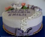 Tort na 90- te urodziny 197Miałam zaszczyt zrobić ten tort dla 90- letniej solenizantki. Owocowy, bo owoce bardzo lubi:). Z musem gruszkowym, masą śmietankową z mascarpone i brzoskwiniami. Literki nie były jeszcze przyklejone i troszkę się rozleciały