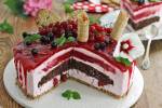 Porzeczkowy tort z glazurą 259Lekki, nie za słodki z mala ilością cukru porzeczkowy tort który szybko znika. Bardzo lubię porzeczki bo są kwaskowe przez to ciasta nie są przesłodzone. Na letnie orzeźwienie w sam raz do kawy. biszkopt: 2 jajka 1 łyżka płaska kakao 3 łyżki cukru trzcinowego 1/2 łyżeczki proszku do pieczenia 1 łyżka mąki ziemniaczanej 2 łyżki mąki pszennej płaskie(...)masy porzeczkowej, na nią układam galaretkę z porzeczki czarnej. Na nią wylewam ostatnią cześć masy z czerwonej porzeczki.Tort wstawiam na noc do lodówki. Na drugi dzień odłożony mus porzeczkowy podgrzewam. Żelatynę namaczam w łyżce zimnej wody. Dodaję do niej gorący mus porzeczkowy i dokładnie rozpuszczam. Tort przed wyjęciem z formy obkrawam na około nożem. Jak galaretka zacznie tężeć lekko, wylewam