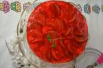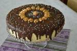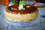 Tort Ambasador 229rodzynki, oraz alkohol. Biszkopt można nasączyć sokiem z ananasa. Na ciasto wykładamy masę ciemną, a potem masę jasną. Brzoskwinie kroimy w plastry i równo rozkładamy na wierzchu , po czym zalewamy tężejącą galaretką, (na rozpuszczenie 2 galaretek dajemy 700 ml wody). Tort odstawiamy do lodówki na kilka godzin aby stężał. Jest przepyszny
