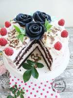 Tort czekoladowo-agrestowy z malinami 245Tort czekoladowo-agrestowy Choć ten tort wyglądem nie powala na kolana, smak jest przepyszny. Zazwyczaj torty robione są na biszkoptowej bazie, ja zrobiłam na wilgotnym cieście czekoladowym, dodatkowo nasączonym ponczem z nalewki porzeczkowej, krem agrestowy, i dodatek świeżych malin to kropka nad” i „ Dekoracja to już kwestia swojego gustu. Jest przepyszny! Róże od Cukieteria Składniki: Tortownica(...)dodać do masy i wymieszać szpatułką do połączenia tak, aby nie naruszyć struktury piany. Wylać ciasto do wyłożonej pergaminem - samo dno, tortownicy, boków nie natłuszczać. Piec około 40 minut w temp 180*c-do suchego patyczka, studzić przy otwartych drzwiczkach. Po wystudzeniu przekroić wzdłuż na 3 blaty. Najlepiej jest ciasto upiec dzień wcześniej przed złożeniem tortu. Krem: Obrany