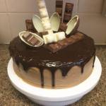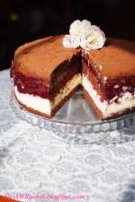 Tort Kinder 590Taki tort zrobiłam na 4-te urodziny mojego synka, amatora słodyczy Kinder :) Był naprawdę zachwycony, a jego mina kiedy zobaczył swój tort była bezcenna :) Jest idealny tort dla prawdziwych łasuchów, ponieważ za sprawą dużej ilości czekolady jest naprawdę słodki, ale niesamowicie pyszny. Przepis na kremy podpatrzony tutaj . Składniki: Biszkopt: 6 jajek 1,5 szklanki cukru 2 i 1/4 szklanki(...)wstawić do lodówki na całą noc. Tak samo przygotować mleczną czekoladę zalewając ją 600 ml gorącej kremówki. Następnego dnia upiec biszkopt. Jajka ubić z cukrem na białą puszystą masę. Następnie porcjami dodawać mąkę wymieszaną z proszkiem do pieczenia. Ciągle miksując, powoli dodawać ciepłą wodę, a następnie olej. Na koniec dodać kakao i dokładnie zmiksować. Przelać do wyłożonej papierem do pieczenia