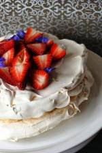 Pavlova z kremem toffi 181Lekka jak chmurka z wierzchu chrupiąca w środku delikatnie wilgotna-idealna! Po raz kolejny mogę śmiało stwierdzić, że uwielbiam bezy. Odkąd zrobiłam swój pierwszy tort bezowy i okazało się, że jest to naprawdę łatwe, Pavlova bywa na moim stole naprawdę często. Tym razem odeszłam od klasyki- zobaczcie co pysznego z tego wyszło. Dodam, że to idealny deser na każdą imprezę(...)jest zła! Składniki: 5 białek jaj kurzych 300g drobnego cukru 2 łyżeczki maki ziemniaczanej 1 łyżka octu winnego cytryna 500 g serka mascarpone 1 łyżka cukru pudru 50 g masy kajmakowej Sposób przygotowania: Sokiem z cytryny nacieramy miskę i wlewamy do niej zimne białka. Ubijamy je na sztywna piane,stopniowo dodając cukier. Dodajmy mąkę ziemniaczaną i ocet-miksujemy przez minute