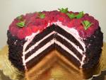Tort czekoladowo - malinowy 156Mocno czekoladowy tort z pysznym kremem z mascarpone i frużeliny malinowej. Prosty i dosyć szybki do zrobienia. Nie za słodki i bardzo fajnie się kroi. Przepis z najsłodszego bloga w sieci: https://www.mojewypieki.com z małymi zmianami. Składniki (tortownica 26 cm): ciasto czekoladowe: jajka 6 szt, mleko 300 ml, olej 250 ml, cukier waniliowy 16 g, cukier 450 g, kakao(...)dodatkowo: maliny ok 400 g, Sposób przygotowania: Ciasto: Jajka roztrzepać widelcem, dodać mleko, olej, cukier zwykły oraz cukier waniliowy i wymieszać. W oddzielnej misce przesiać suche składniki, dodać do masy jajecznej i wymieszać do połączenia(nie mikserem), możemy to zrobić za pomocą rózgi kuchennej. Ciasto wylewamy na blaszkę wyłożoną papierem do pieczenia i pieczemy w 170 st. C przez