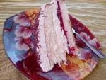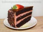 Tort czekoladowo-malinowy 208lodówki na całą noc. Krem malinowy: 500 g serka mascarpone frużelina malinowa Wszystkie składniki powinny być schłodzone. Mascarpone i frużelinę umieścić w misie miksera i zmiksować na gładką masę. Polewa truskawkowa: 120 g dżemu truskawkowego aksamitnego 1 łyżeczka żelatyny Żelatynę w proszku zalać 2 łyżkami wody, odstawić na 10 minut do napęcznienia. Postawić na palniku i podgrzewać, mieszając(...)lodówce, by polewa zgęstniała. Wykonanie Pierwszy blat ciasta ułożyć na paterze. Posmarować 1/3 kremu malinowego. Przykryć drugim blatem, następnie posmarować połową pozostałego kremu. Przykryć ostatnim czekoladowym blatem. Boki tortu posmarować pozostałym kremem, oprószyć czekoladowymi drobinkami. Schłodzić. Po chwili na górę wylać tężejącą polewę truskawkową. Przechowywać w lodówce. SMACZNEGO