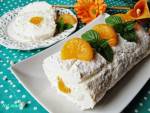 Rolada bezowa z mandarynkami 414lubię bezowe wypieki to już chyba wiecie. Tort pawłowej piekłam już nie raz. Tym razem pokusiłam się na roladę bezową. Jest również pyszna, delikatna, lekka i rozpływa się ustach. Jednak najtrudniejszy krok to zwinięcie rolady. Ale nie rezygnujcie mimo wszystko warto zrobić. Składniki: 4 białka 1 szk cukru drobnego 1 łyżeczka octu winnego Jamar 1 łyżeczka mąki ziemniaczanej(...)kremówki 1 szt śmietan fix mandarynki w puszce Przygotowanie: Zimne białka ubić na sztywno. Dodawać po łyżce cukru i cały czas miksować do rozpuszczenia się cukru a masa będzie biała i lśniąca. Na koniec dodać ocet, mąkę ziemniaczaną chwilkę zmiksować. Wyłożyć na blachę o wymiarach 25*36 cm wyłożoną papierem do pieczenia i równomiernie rozsmarować. Włożyć do nagrzanego piekarnika